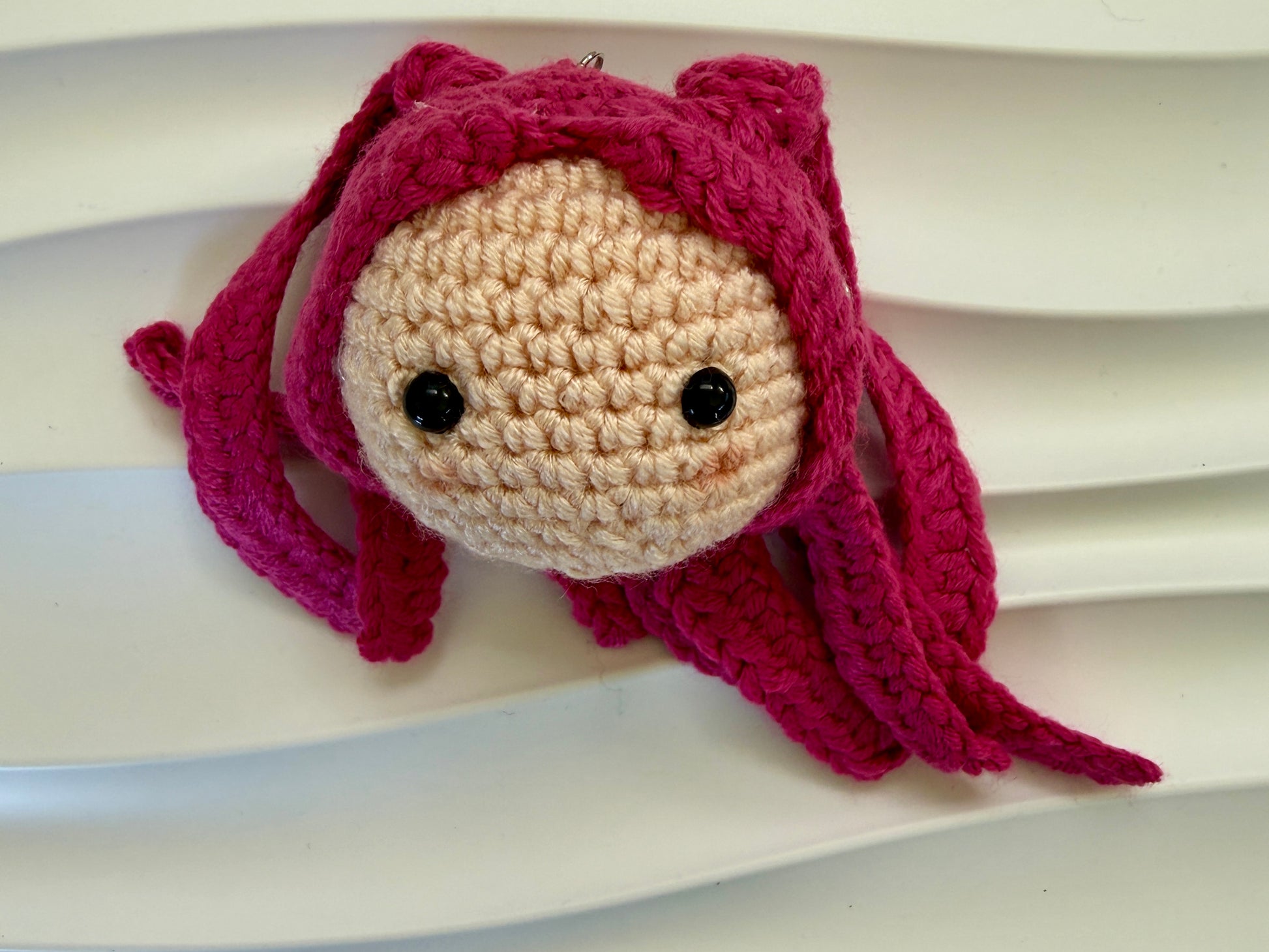 Handmade crochet keychains inspired by Huntrix Girls (K-Pop Demon Hunters) — perfect for backpacks, purses, concert bags, or fan collections. 💗
